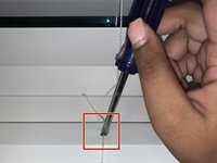 Using the 7/32" flathead screwdriver, gently lift up the buttons located on the bottom rail of the blinds.