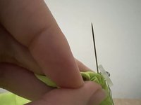 • Insert the needle into the button-hole area, where the missing button was located.
