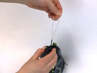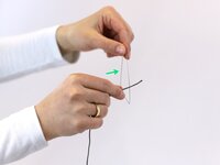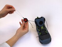 Push the dial to the end of the lace and repeat the previous steps of inserting the metal loop with lace on the other hole of the dial (green circle).