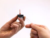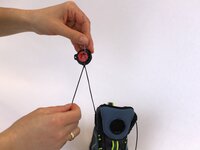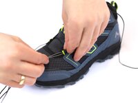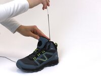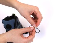Following the direction of the red arrows, secure the lace by inserting it in the safety loop on the side, and pulling it upwards.