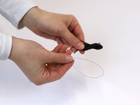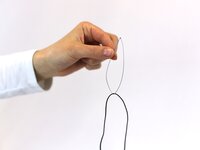 Once the metal loop has been inserted in the other hole, keep pulling it until the lace has passed through.
