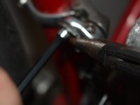 Take up the slack on the shifter cable with pliers and tighten down the bolt on the retaining clamp.