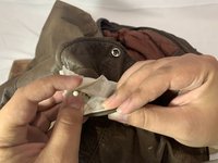• Stitch the new pocket onto the jacket using a leather needle and polyester thread.