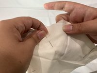 • Use the sewing pattern as a reference for where the fabric should be laid out and pinned together.