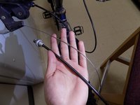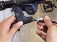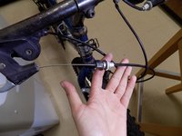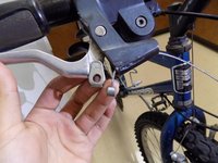 Pull the cable to clamp down the brakes so they almost touch the rim of the wheel.