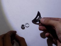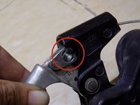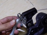 Slide the connector of over the screw and tighten the nut and washer on the other end by hand, so it can slide along the brake cable.