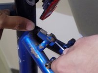 Insert the end of the brake cable with a "nub" into the slot on the rear left brake.