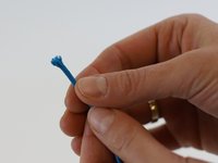 Prepare for removing the plastic stopper, by cutting the lace behind the stopper.
