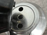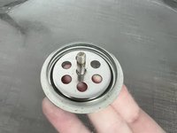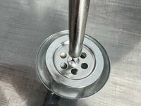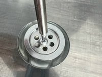 Insert the screw with the smaller iron sheet from inside of the lid to outside of the lid
