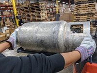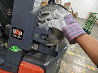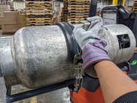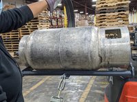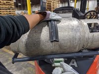 Position the new tank in the rack so that the forklift adapter is facing away from you.