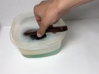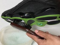 • Use a soft bristle brush with the soap and water mixture to scrub dirt from bottom of shoe.