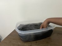 Place the synthetic wig into the container