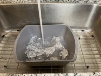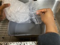 Prepare an ice bath by filling a bin with water and ice in a small tub.