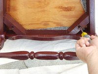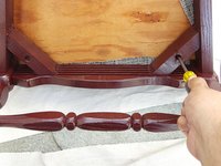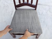 Grab your newly covered cushion and place it on the seat of the chair frame.