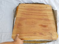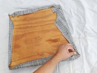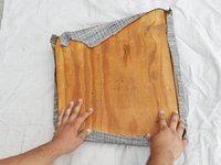 Make sure to align all four corners of the wood to the corners of the cushion.