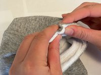 It is recommended that the hoodie and string are washed before beginning this repair. This ensures that no dirt gets carried and stuck in the hole of the hoodie. It is also best if someone is not wearing the hoodie while repairing it so it is easier to move the safety pin through the hoodie.
