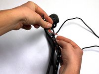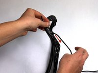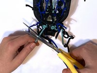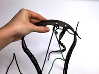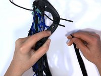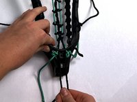 Pull the ends of black cross-strings through the same holes the nylon strings are tied off at.