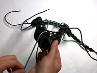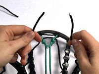 Thread the cross-string under nylon and through the second twist of the black cross-string.