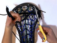 This guide is a complete replacement of all strings. Each step per string can be done solo if only one string-part of the lacrosse head needs repair.
