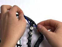 Thread the remining blue cross-string through the first loop of the sidewall string.