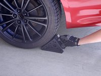 Chock the rear wheels to prevent the vehicle from rolling backwards down the ramps.