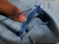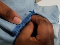 Push the thread tail back into the seam of the jeans to hide it.