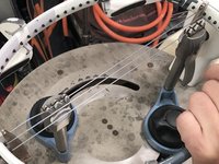 Continue threading the main strings and clamping the strings until all holes have been strung.