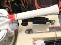 Secure and tighten the end of the string by attaching it to the clamp and moving the rod into the horizontal position.