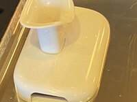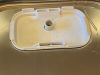 Take the cleaned spout and place the base of the spout into the hole of the lid.
