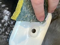 Locate the lock (rectangle shaped gap) at the base of the sponge holder.