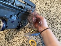 With your scissors, cut any wrapped hairs or strings that may be stuck on the rollers.