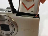 Use the Battery Removal guide to remove your camera battery. Once the battery is removed, insert it into the charger that came with your PowerShot A4000 camera.