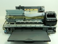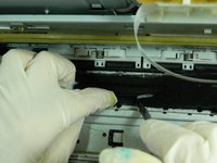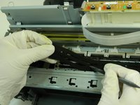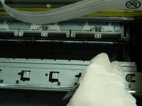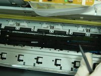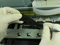 Use the flat end of the spudger to push the white button next to the ink cartridge carrier.