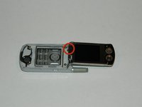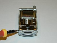 Locate the gap between the display housing and internal cover, in the same manner you would flip open the phone, use your finger (not shown) to lift the housing from the cover and set it down.