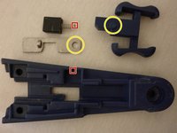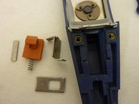Now you can bring together the orange part with the spring and the metal chip which belongs to it (As seen in the picture).