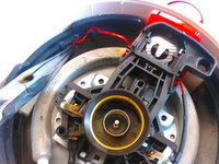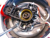 Next, you can detach the black plastic part with the switch after loosening the red wires from the plastic. With this, you can remove the plastic tube as well.