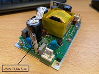 solder the new 250V T1.6A fuse to the board