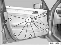 Using a trim tool or similar, begin at the bottom of the door card and pop the card away from the door frame.