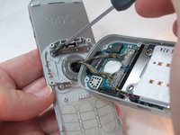 Using the Spudger, gently pry up the U-shaped grey cover below the keypad.