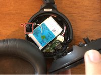 Pull the inner part of the headphone partially from the other hinge, being careful not to damage the wire going through it.