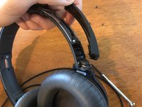 Pull the lower hinge assembly away from the upper portion of the headphones, being careful not to damage the wire.