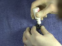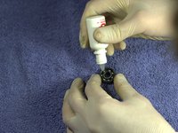 Once dry, pick up your bearings with two fingers and drop 2 drops of skateboard lubricant into the bearing.