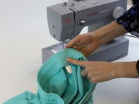 Make a short straight stitch over the drawcord, to attach it to the fabric. Repeat 1-2 times for extra security and finish with a lock stitch