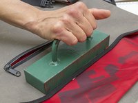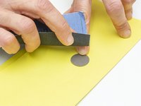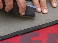 Roughen both sides (underside of the patch and the damaged area) with 120 grit sandpaper.