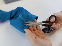 Cut the extra thread to make a clean finished seam. Turn the item right-way-round.