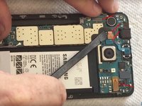 Pry up the wireless charging chip. Be careful not to damage the fragile flex ribbon. Insert the case opening tool into the gap between rear housing and LCD assembly to release the rear housing.