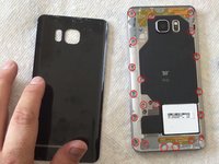 Run the hair drier or heat gun around the edges of Note 5 on the back to soften the adhesive.