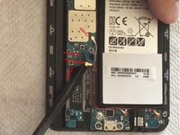 Pry up the charging port flex connector, RF signal cable connectors and a connector underneath as shown in the picture to release the motherboard.