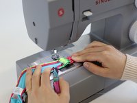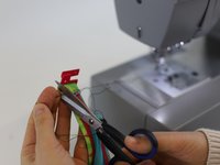 Make a locking stitch, followed by a straight stitch. Repeat the straights stitch 1-2 times and finish with another locking stitch.