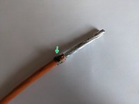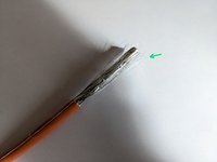 Pull back the grounding mesh and twist it around the first cm of still insulated cable.